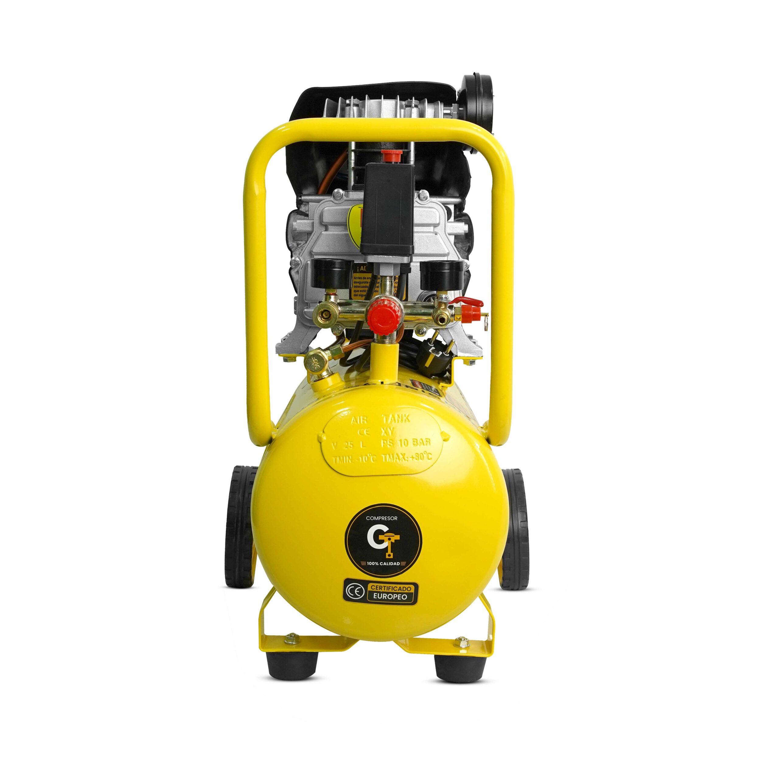 Cuenta con un sistema WITH OIL (con aceite) que reduce el desgaste y mejora el funcionamiento del motor, proporcionando un trabajo más limpio y estable incluso en jornadas prolongadas. Su estructura robusta y su tanque de 25 litros permiten mantener una presión constante de aire para múltiples aplicaciones.