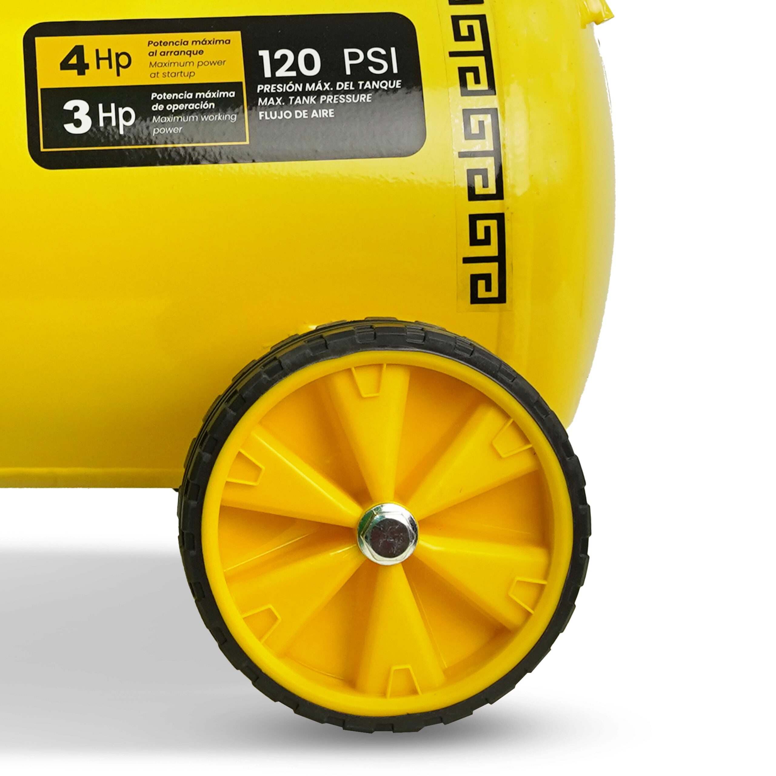 • 120 PSI de presión máxima, suficiente para herramientas neumáticas, inflado y trabajos de mantenimiento.